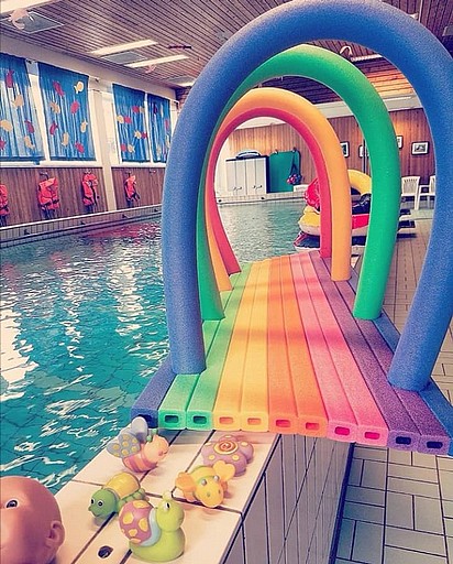 Eftersom det är en mindre bassäng erbjuder vi här i första hand babysim för 8 stycken bebisar i taget och bara 1 medföljande vuxen i vattnet. Är man 2 vuxna får den andre gärna vara med inne i simhallen och titta på från land, detta för att alla ska ha tillräckligt med utrymme för att röra sig runt i bassängen.