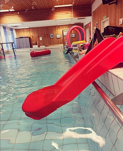 Kom ihåg att blöta bassänggolv är hala - ta det lugnt!